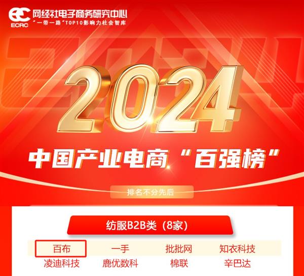 近日,网经社电子商务研究核心结合旗下财产电商台发布《2024年中国财产电商“百强榜”》。榜单按照行业分为:分析B2B、钢铁电商、塑化电商、印包电商、快消品B2B、工业品电商、元器件电商、农业B2B、批发电商、建材家拆、其他B2B及B2B办事商等进行分类形成共130家企业,上榜企业均为各范畴的国内领先平台。此中,致景科技旗下“百布”成品布互换衣务平台入选纺服B2B类“百强榜”。