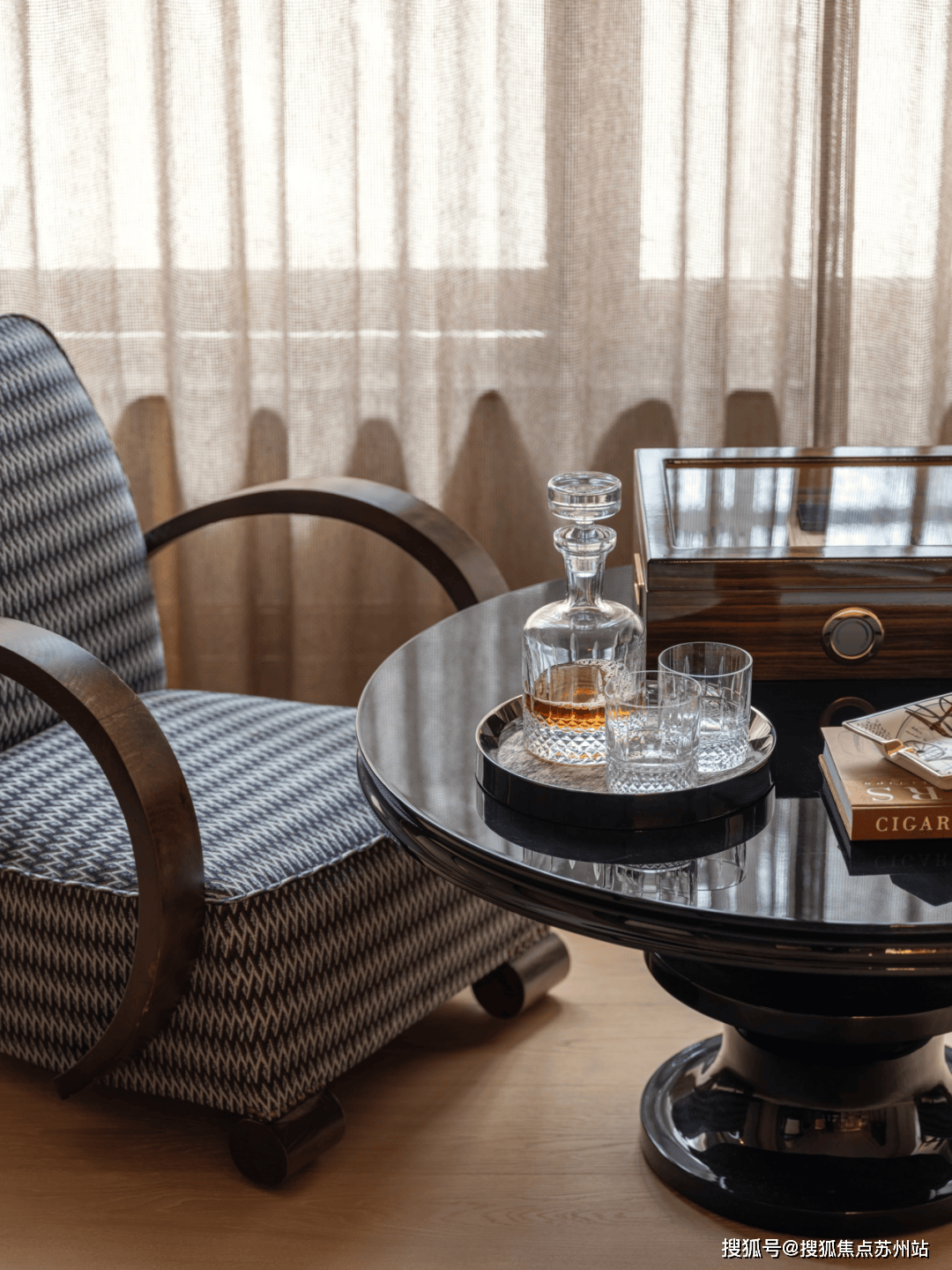 客堂另一端,是毗连房内取外景的介质空间,正在这里仆人和客人能够享受琼浆雪茄。看似的空间,现实延长了客堂的功能,也延长了窗外景不雅到室内的视线。