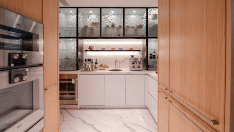 以餐厅为载体,沉构“人取空间”的关系,让人和各项功能发生“亲密接触”,让人空间,成为空间配角。天潼198(公寓)展现样板间实景图空间结构以满脚日常需求为从导,休憩、打扮、阅读,各功能区划分清晰,同时添加了取户外景不雅的联动,引景入室,表里呼应。厨房采用洄逛式立体结构,一半是“工做厨房”,现于内部的中式厨房,无效避免油烟外泄,无论烹炸煎烤,空间之外清爽照旧。另一半是“社交厨房”,显于外部的西式厨房,取餐厅连结优良的视线关系,烹调西餐的同时可取亲朋无碍交换互动,分趣。安设一组玻璃柜,便于展现仆人的藏品餐具,让厨房也成为艺术的浸湿之地。书房色调沉稳大气,细心设想的温和灯光突显书喷鼻气韵,吸惹人们长久驻脚,于的空气中品尝学问的力量。